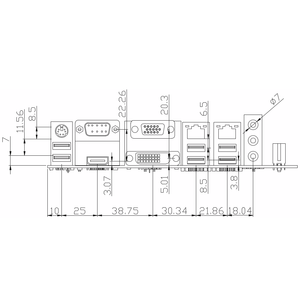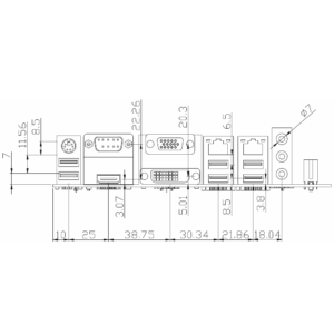 2 x USB 2.0 (Type A, edge-mounted with PS/2)