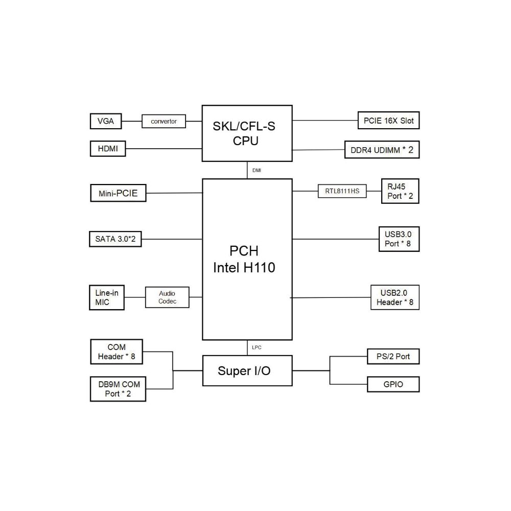 Intel® LGA1151 socket, supports 6th/7th/8th/9th Gen Celeron, Pentium, Core i3/i5/i7/i9 processors