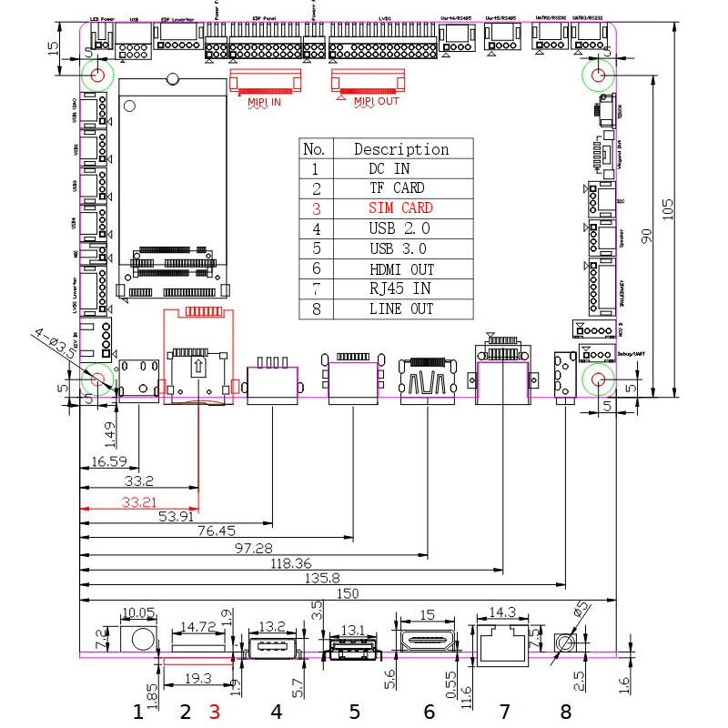 HDMI OUT, MIC input, Multiple Serial Ports, I2C, Touch, Wiegand, etc.